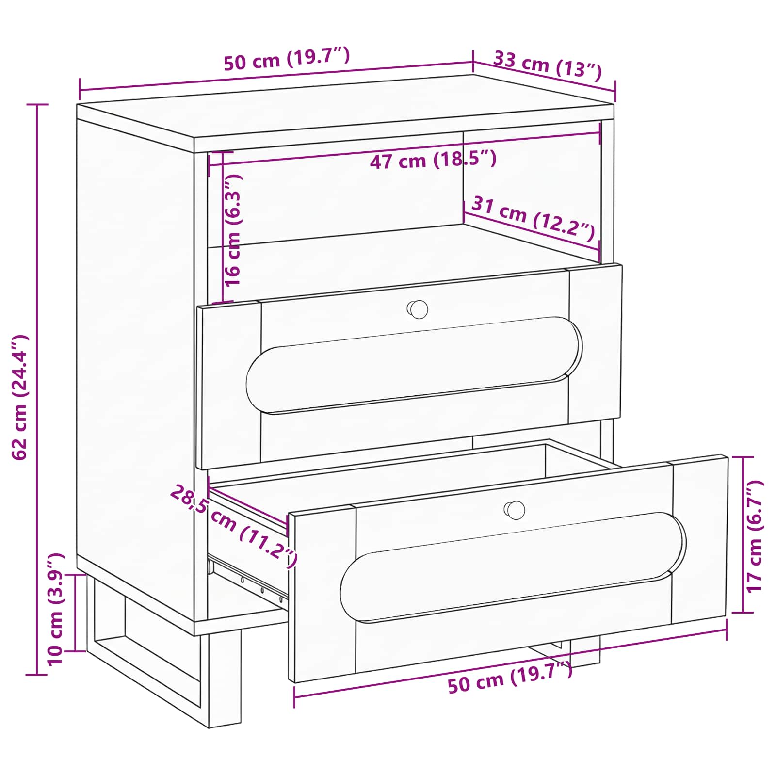 - Yleiset mitat: 50 x 33 x 62 cm (L x S x K)